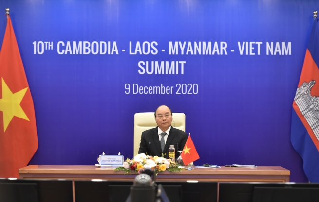 Sáng 9/12, Thủ tướng Chính phủ Nguyễn Xuân Phúc đã tham dự Hội nghị Cấp cao (HNCC) Hợp tác Campuchia-Lào-Myanmar-Việt Nam (CLMV) lần thứ 10 theo hình thức trực tuyến. Hội nghị còn có sự tham dự của nguyên thủ, người đứng đầu Chính phủ các nước Campuchia, Lào và Myanmar. Đoàn Việt Nam tháp tùng Thủ tướng Chính phủ dự Hội nghị gồm đại diện Lãnh đạo các Bộ: Ngoại giao; Công Thương; Giao thông vận tải; Giáo dục và Đào tạo; Kế hoạch và Đầu tư; Nông nghiệp và Phát triển nông thôn; Tài nguyên và Môi trường; Văn hóa, Thể thao và Du lịch; Y tế và Văn phòng Chính phủ.