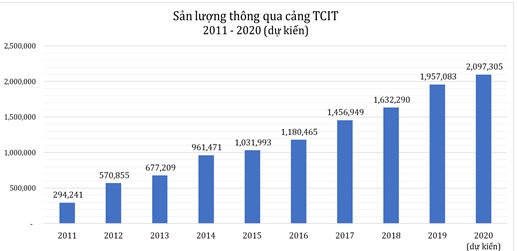 Tính đến thời điểm này, TCIT là Cảng nước sâu đầu tiên tại Việt Nam và là cảng công – ten – nơ thứ 2 tại Việt Nam – sau Cảng Tân Cảng – Cát Lái tại Tp. HCM đạt mốc sản lượng này. Cột mốc tiếp nhận hơn 2.000.000 TEU trong năm 2020 của cảng TCIT, tăng 6,2 lần so với năm đầu tiên đi vào hoạt động năm 2011, đã khẳng định sự phát triển bền vững của cảng TCIT nói riêng, cũng như tiềm năng và sức hút của khu vực Cái Mép - Thị Vải thuộc tỉnh Bà Rịa – Vũng Tàu nói chung.