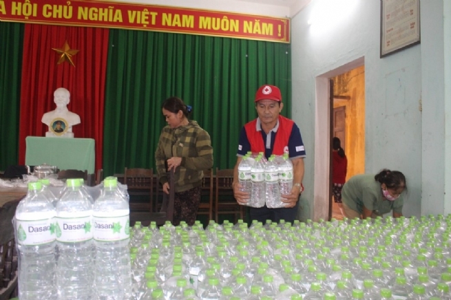 Những chai nước sạch được trao tận tay người dân ngay cả những khu vực nguy hiểm