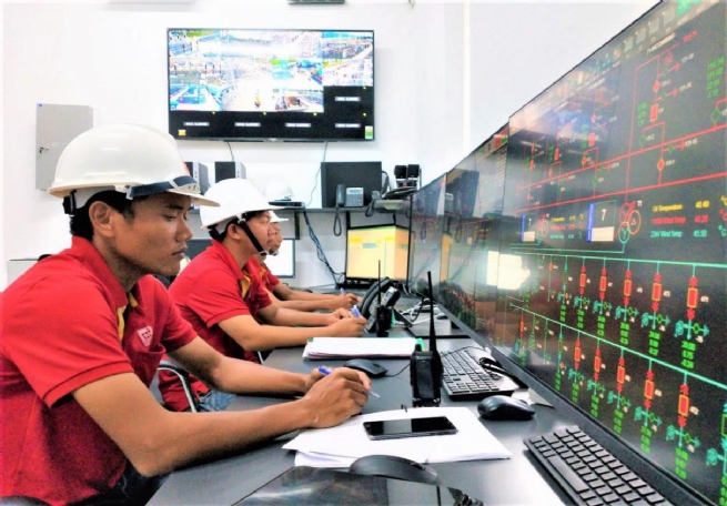 Nét đẹp lao động - Cán bộ kỹ thuật làm việc với sơ đồ nối điện trên màn hình HMI