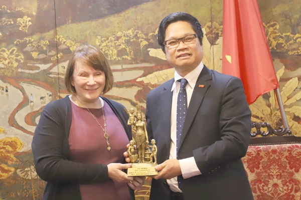 Nhân chuyến thăm, TS.Vũ Tiến Lộc đã trao tặng bức tượng Mẫu Âu Cơ cho Giám đốc quốc gia USAID