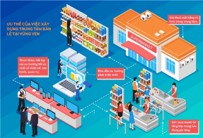 Vùng ven hai thành phố lớn nhất cả nước là TP HCM và Hà Nội đang là điểm đến ưu thích của nhiều tập đoàn khi muốn triển khai các trung tâm mua sắm. Điều này cho thấy nhiều thay đổi về tầm nhìn của giới đầu tư, xu thế nhà ở, hành vi và thói quen mua sắm của cư dân. Một xu hướng mới về phát triển trung tâm bán lẻ cũng đã được định hình.