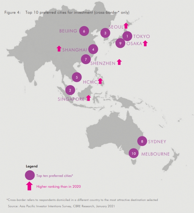 Các nhà đầu tư quan tâm đến thị trường Đông Nam Á cho biết sẽ sẵn sàng chi trả nhiều hơn cho các bất động sản trong năm tới. 39,4% những nhà đầu tư này sẵn sàng trả giá cao hơn 10% so với năm 2020, và 19,7% sẵn sàng trả nhiều hơn mức 10%. Nhà đầu tư tìm kiếm tài sản có tiềm năng tăng giá trị và tài sản cốt lõi và một số bắt đầu tìm kiếm tài sản đang bị áp lực tài chính. Bất động sản công nghiệp, kho vận, văn phòng tiếp tục là loại hình được tìm kiếm, trong khi bất động sản du lịch dần phục hồi
