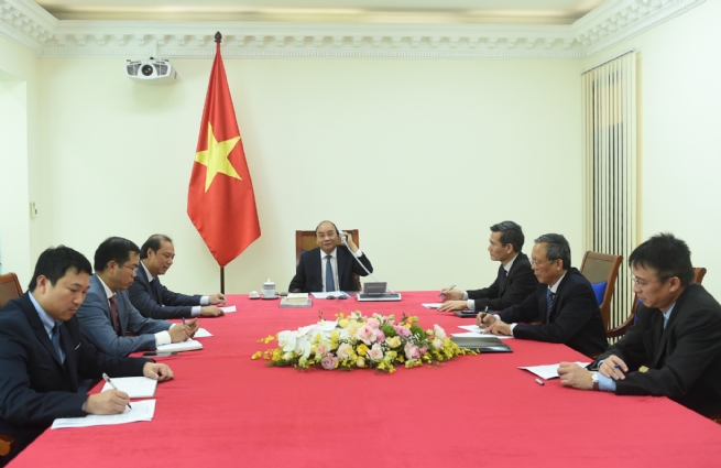 Thủ tướng Chính phủ Nguyễn Xuân Phúc điện đàm với Thủ tướng Singapore Lý Hiển Long để trao đổi về quan hệ song phương và các vấn đề khu vực, quốc tế cùng quan tâm. Ảnh: Quang Hiếu
