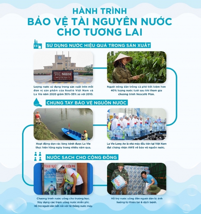Ngoài ra, Công ty TNHH Nestlé Việt Nam, một thành viên khác của Tập đoàn Nestlé, cũng đang tăng cường các chương trình sử dụng nước hiệu quả trong sản xuất và bảo vệ tài nguyên nước.