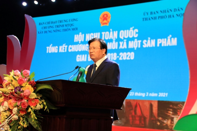 Sáng 23/3, tại Hà Nội, Ban chỉ đạo Trung ương Chương trình Mục tiêu quốc gia xây dựng nông thôn mới phối hợp với Ủy ban Nhân dân thành phố Hà Nội tổ chức Hội nghị toàn quốc tổng kết Chương trình Mỗi xã một sản phẩm (OCOP) giai đoạn 2018-2020. Phát biểu tại hội nghị, Phó Thủ tướng Trịnh Đình Dũng yêu cầu, trong quá trình triển khai chương trình, tuyệt đối không được làm theo phong trào, “xuê xoa” trong quá trình thẩm định, đánh giá, công nhận sản phẩm OCOP. Điều này sẽ làm ảnh hưởng tiêu cực đến thương hiệu của các sản phẩm OCOP.