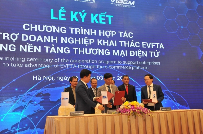Chiều 26/3, Viện Khoa học Quản trị doanh nghiệp và kinh tế số Việt Nam (VIDEM) cùng Cục Thương mại Điện tử và Kinh tế số - Bộ Công Thương (IDEA) và Kim Nam Group đã triển khai chương trình hợp tác hỗ trợ doanh nghiệp khai thác Hiệp định thương mại tự do Việt Nam - Liên minh châu Âu (EVFTA) bằng nền tảng thương mại điện tử.