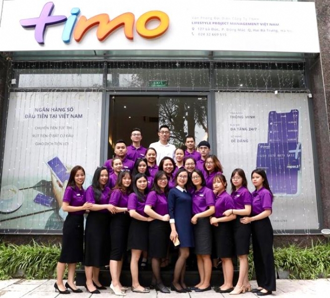 Timo chú trọng phát triển chất lượng nguồn nhân lực để cải thiện chất lượng dịch vụ và nâng tầm trải nghiệm khách hàng. Ảnh: Đội ngũ nhân viên Timo chi nhánh Hà Nội.