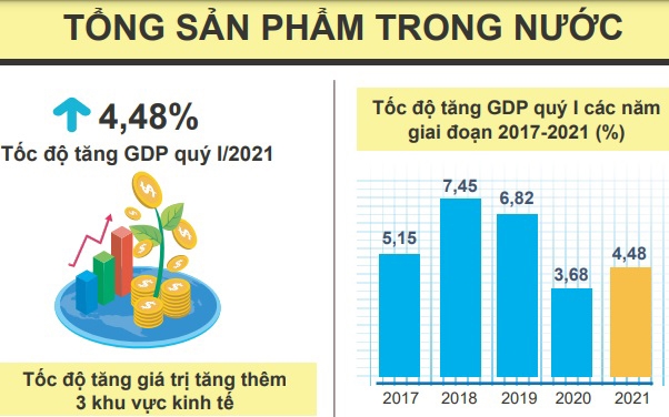 Báo cáo về tình hình kinh tế - xã hội, bà Nguyễn Thị Hương, Tổng cục trưởng Tổng cục Thống kê Việt Nam thông tin, tổng sản phẩm trong nước (GDP) quý I/2021 ước tính tăng 4,48% so với cùng kỳ năm trước, cao hơn tốc độ tăng 3,68% của quý I/2020. Mặc dù kết quả tăng trưởng GDP chưa cao như kỳ vọng nhưng đây là con số chấp nhận được trong bối cảnh dịch bệnh.