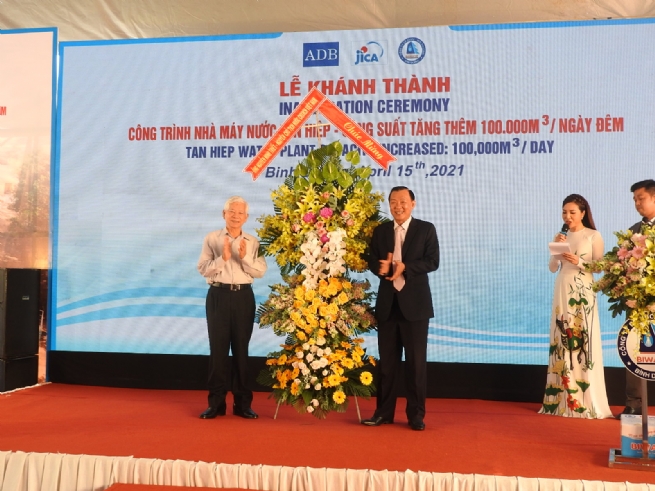 Phát biểu tại lễ khánh thành, Phó Chủ tịch UBND tỉnh Bình Dương Nguyễn Thanh Trúc đã cảm ơn các nhà tài trợ, các bộ ngành, đơn vị thi công và Công ty cổ phần Nước – Môi trường Bình Dương “Với tốc độ tăng trưởng, phát triển nhanh, ngân sách tỉnh không thể đảm đương cho các công trình hạ tầng cấp thoát nước, môi trường. Với sự nỗ lực phấn đấu, tìm kiếm nguồn vốn bằng uy tín của mình Biwase đã được các nhà đầu tư là Ngân hàng Phát triển Châu Á ADB, Tổ chức Hợp tác quốc tế Nhật Bản Jica đồng tài trợ nguồn vốn 16 triệu USD để đầu tư phát triển nhà máy, cùng hệ thống đường ống bảo đảm cung cấp đủ nước sạch cho sinh hoạt và phát triển công nghiệp, đô thị, dịch vụ của tỉnh.