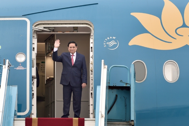 Thủ tướng Chính phủ Phạm Minh Chính lên đường tham dự Hội nghị các Nhà Lãnh đạo ASEAN được tổ chức tại Indonesia. Ảnh: VGP/Nhật Bắc