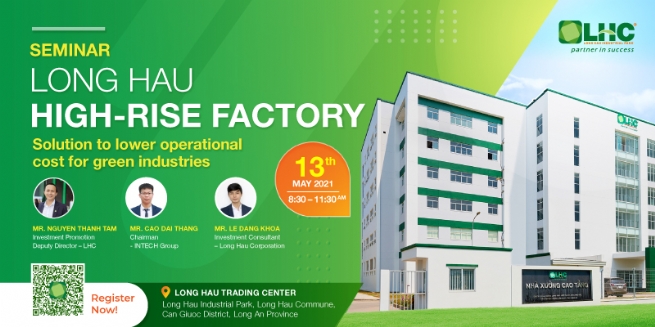 HỘI THẢO “NHÀ XƯỞNG CAO TẦNG - GIẢI PHÁP TIẾT GIẢM CHI PHÍ VẬN HÀNH CHO CÁC NGÀNH CÔNG NGHIỆP SẠCH” Thời gian: 8h30-12h00, thứ 5 ngày 13/05/2021 Khu công nghiệp Long Hậu - Đối tác phát triển bền vững |