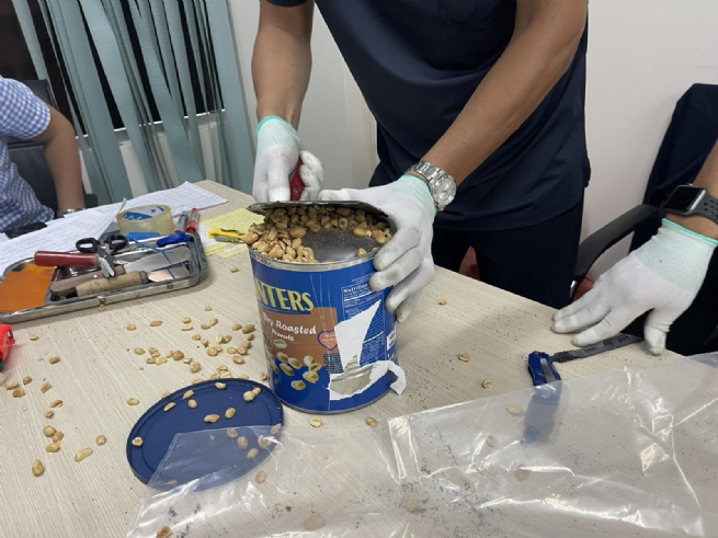 Ngày 26/4/2021, Cục Hải quan TP.HCM phối hợp với Cục Điều tra chống buôn lậu - Tổng cục Hải quan và Phòng PC04 - Công an TPHCM tiến hành mở kiểm tra thực tế 16 bưu kiện nghi vấn nêu trên, đã phát hiện và thu giữ tổng cộng gần 36kg ma túy các loại gồm: ma túy tổng hợp dạng viên nén MDMA (thuốc lắc), cần sa và ketamine được ngụy trang tinh vi trong các hộp kem dưỡng ẩm, các lon lạc rang, trà, cà phê… bằng thiếc được quấn giấy bạc bên trong, hút chân không và dập kín nắp để đối phó với máy soi và chó nghiệp vụ, lực lượng hải quan phải dùng đến máy cắt mới lấy ma túy ra được. Đặc biệt, các viên thuốc lắc (MDMA) được nguỵ trang trong các lon sữa bột thiết kế 02 đáy (phía trên là sữa, phía dưới chứa ma túy) nếu bằng mắt thường sẽ không thể phát hiện.