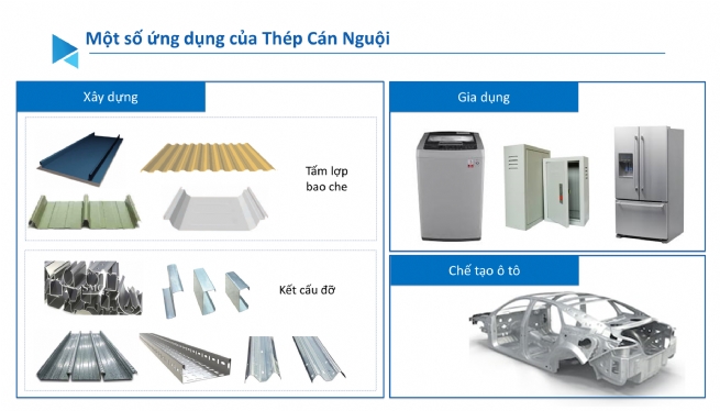 Thép cán nguội, hay còn được gọi là thép thành mỏng hoặc thép tạo hình nguội, có thành mỏng dưới 04 mm, được gia công nguội giúp gia tăng khả năng chịu lực và giới hạn chảy lên đến 30%. Thép cán nguội thường được ứng dụng trong xây dựng, giao thông, chế tạo ô tô, hàng gia dụng….