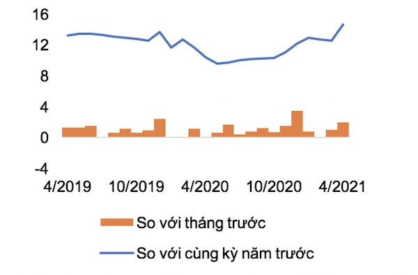 Trong tháng 4 năm 2021, sản xuất công nghiệp tiếp tục đà tăng trưởng mạnh, trong khi doanh số bán lẻ phục hồi sau hai tháng giảm liên tiếp. Xuất khẩu hàng hóa giảm nhẹ nhưng vẫn ở mức cao nhờ vào sự phục hồi kinh tế đang diễn ra tại Hoa Kỳ và Trung Quốc, trong khi dòng vốn đầu tư trực tiếp nước ngoài chậm lại sau hai tháng tăng.