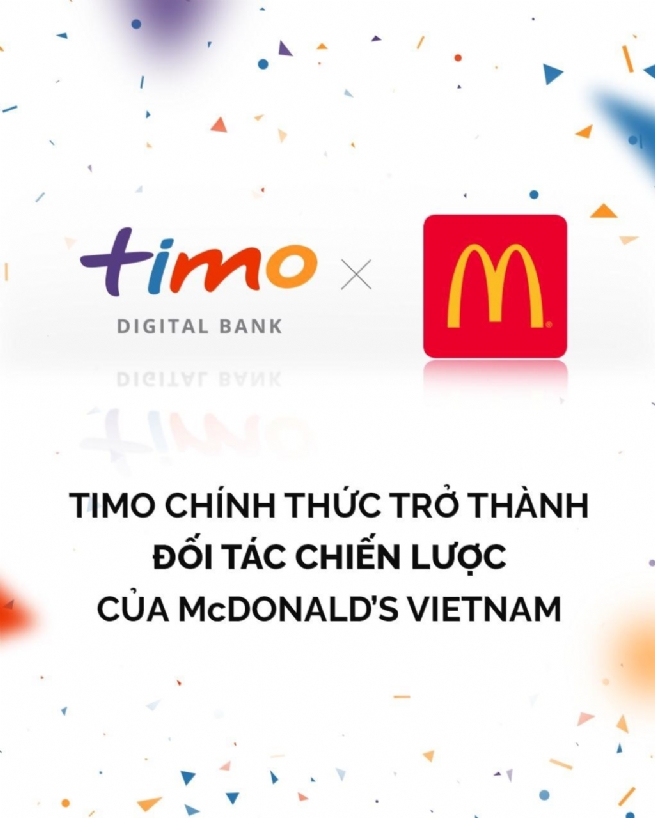 Nền tảng ngân hàng số Timo vừa thông báo chính thức trở thành đối tác chiến lược của thương hiệu thức ăn nhanh số 1 toàn cầu McDonald’s tại Việt Nam. Sự hợp tác này giúp Timo và McDonald’s khai thác những điểm độc đáo và đẩy mạnh hiệu quả tiềm năng, ưu thế sẵn có của mỗi bên, từ đó mang đến những ưu đãi hấp dẫn cùng những trải nghiệm hào hứng và thú vị đến cho người tiêu dùng, đặc biệt là giới trẻ.
