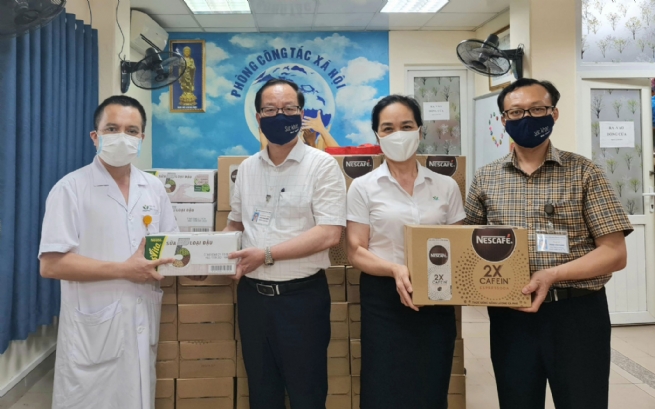Gần 60.000 sản phẩm dinh dưỡng được Công ty Nestlé Việt Nam trao tới hơn 20.000 cán bộ nhân viên y tế đang làm việc tại 15 bệnh viện và trung tâm y tế ở Hà Nội trong 2 tuần cuối tháng 5/2021. Hoạt động nhằm chung tay góp phần chia sẻ khó khăn, hỗ trợ đội ngũ cán bộ, y bác sĩ đang làm nhiệm vụ tuyến đầu trong công tác phòng, chống dịch.