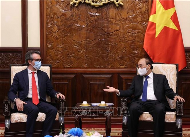 Tại buổi tiếp, Chủ tịch nước Nguyễn Xuân Phúc vui mừng chứng kiến Quan hệ đối tác và hợp tác toàn diện Việt Nam – EU thời gian qua có những bước phát triển tích cực và EU đã trở thành một trong những đối tác quan trọng hàng đầu của Việt Nam trong nhiều lĩnh vực. Hai bên đã ký kết nhiều Hiệp định hợp tác trong các lĩnh vực chính trị, thương mại, đầu tư, an ninh quốc phòng như Hiệp định đối tác và hợp tác toàn diện Việt Nam – EU (PCA), Hiệp định thương mại tự do (EVFTA), Hiệp định khung về việc Việt Nam tham gia các hoạt động quản lý khủng hoảng của EU (FPA), Hiệp định đối tác tự nguyện về thực thi luật lâm nghiệp, quản trị rừng và thương mại lâm sản (FLEGT) là nền tảng vững chắc đưa quan hệ Việt Nam-EU lên tầm cao mới.