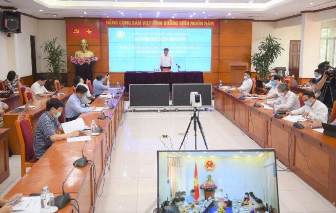 Theo Thứ trưởng Bộ NN&PTNT Trần Thanh Nam, tháo gỡ vướng mắc kỹ thuật thúc đẩy tiêu thụ nông sản là nhiệm vụ trọng tâm của ngành để thực hiện mục tiêu kép của Chính phủ vừa chống dịch COVID-19 vừa bảo đảm phát triển kinh tế - xã hội. Theo đó, các đơn vị thuộc bộ tiếp tục duy trì và phát triển các liên kết chuỗi giá trị gắn sản xuất với tiêu thụ sản phẩm giữa doanh nghiệp với nông dân thông qua hợp tác xã, tổ hợp tác. Phối hợp theo ngành dọc với các địa phương trong bảo đảm sản xuất an toàn dịch bệnh, vệ sinh an toàn thực phẩm, chất lượng sản phẩm. Tăng cường triển khai các quy trình, thủ tục theo hình thức trực tuyến, khai báo điện tử để vừa đẩy nhanh tiến độ, giảm chi phí cho doanh nghiệp, vừa bảo đảm yêu cầu hiệu quả phòng chống dịch bệnh COVID-19.