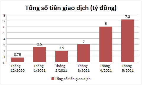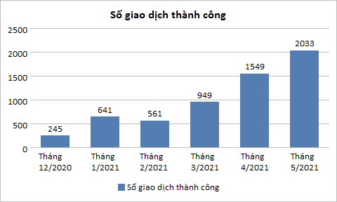 Đã có 7 nghìn giao dịch được thực hiện thành công với tổng số tiền là 25 tỷ đồng. Đặc biệt, số giao dịch và số tiền giao dịch đã có sự tăng trưởng mạnh theo từng tháng (cụ thể xem biểu đồ dưới đây).