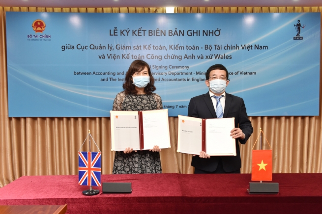Viện Kế toán Công chứng Anh và xứ Wales (ICAEW) và Cục Quản lý, Giám sát Kế toán, Kiểm toán - Bộ Tài chính Việt Nam (Cục QLKT) vừa chính thức ký kết Biên bản ghi nhớ hợp tác (MOU) nhằm nâng cao chất lượng nguồn nhân lực, đồng thời thúc đẩy sự phát triển của ngành Kế toán, Kiểm toán Việt Nam phù hợp với yêu cầu hội nhập kinh tế quốc tế.