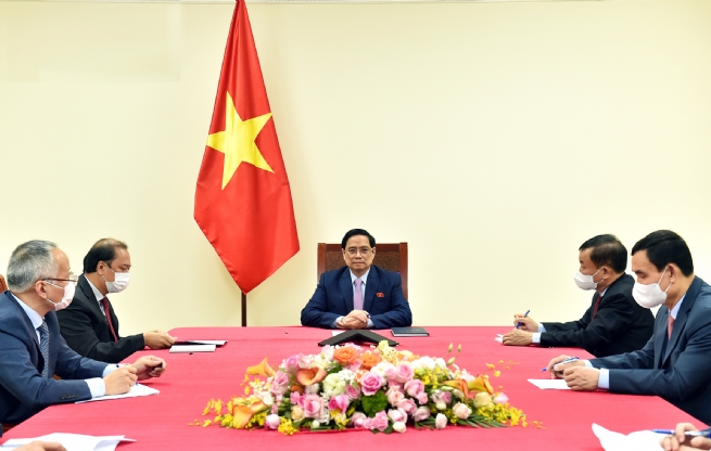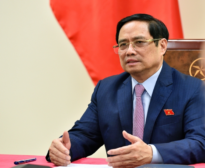 Tại cuộc điện đàm, Thủ tướng Phạm Minh Chính nhấn mạnh hai bên cần tích cực hợp tác để tiếp cận bình đẳng nguồn vaccine trên thế giới hiện nay, nhất là đối với các nước đang phát triển. - Ảnh: VGP/Nhật Bắc