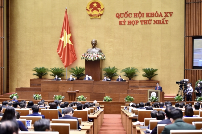 Họp phiên toàn thể tại Hội trường vào chiều 26/7, với 100% (479/479) đại biểu tham gia biểu quyết tán thành, Quốc hội đã thông qua Nghị quyết bầu đồng chí Phạm Minh Chính, Thủ tướng Chính phủ nhiệm kỳ 2016-2021 (từ tháng 4/2021) giữ chức Thủ tướng Chính phủ nhiệm kỳ 2021-2026.