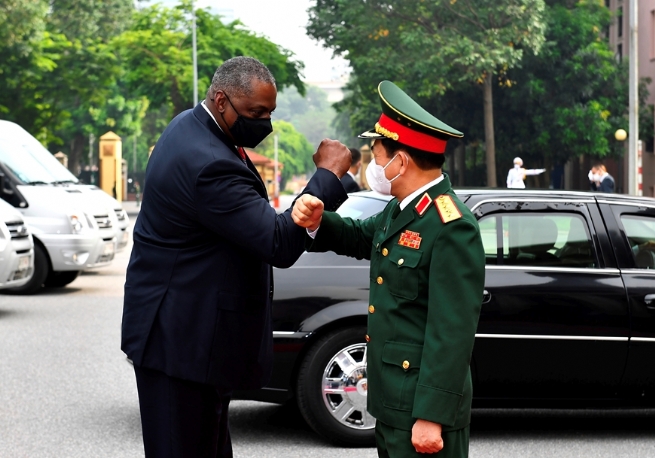 Nhận lời mời của Đại tướng Phan Văn Giang - Bộ trưởng Bộ Quốc phòng, Bộ trưởng Quốc phòng Hoa Kỳ Lloyd Austin thăm chính thức Việt Nam từ ngày 28-29/7. Sáng 29/7, tại trụ sở Bộ Quốc phòng, Đại tướng Phan Văn Giang đã chủ trì lễ đón chính thức Bộ trưởng Quốc phòng Hoa Kỳ Lloyd Austin.