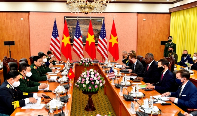 Bộ trưởng Quốc phòng Hoa Kỳ nhất trí tập trung thúc đẩy dự án tẩy độc dioxin tại sân bay Biên Hòa đúng tiến độ và các dự án nhân đạo khác tại Việt Nam, hợp tác quân y phòng, chống COVID-19 và các gói hỗ trợ về thực thi pháp luật trên biển cho Việt Nam.