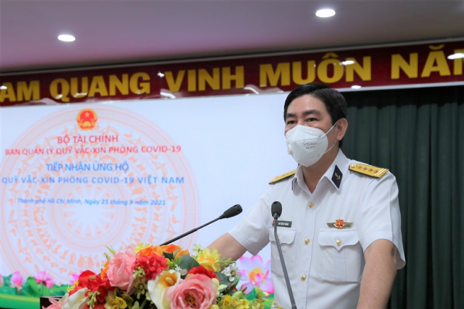 Sáng 25/9, tại Hội trường Kho bạc Nhà nước Thành phố Hồ Chí Minh, đoàn công tác của Tổng Công ty Tân cảng Sài Gòn do Đại tá Ngô Minh Thuấn, Tổng Giám đốc làm trưởng đoàn đã đến trao tặng kinh phí ủng hộ Quy vắc xin phòng, chống Covid-19 của Chính phủ thông qua đại diện Bộ Tài chính.