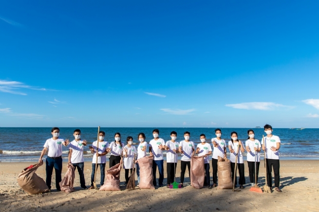 Hoạt động dọn biển tại bãi biển Thiên Cầm (Hà Tĩnh) đã thu hút sự tham gia của đoàn viên thanh niên Huyện đoàn Cẩm Xuyên