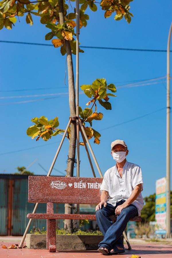 Người dân huyện Cẩm Xuyên phấn khởi với cơ sở vật chất, ghế đá, cây trồng mà nhãn hàng bia Huda vừa trao tặng