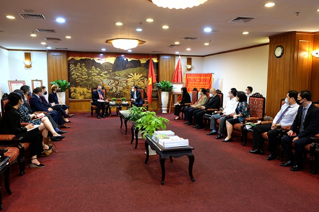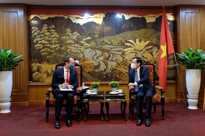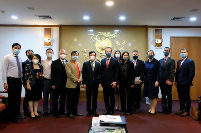 Đại biện lâm thời Christopher Klein cũng chia sẻ những ưu tiên của Hoa Kỳ trong thời gian tới, đặc biệt trong việc hỗ trợ Việt Nam đẩy lùi dịch Covid-19, phối hợp triển khai các chương trình của USAID, các hoạt động trao đổi đoàn thương mại đặc biệt trong lĩnh vực năng lượng, sức khỏe, thành phố thông minh…