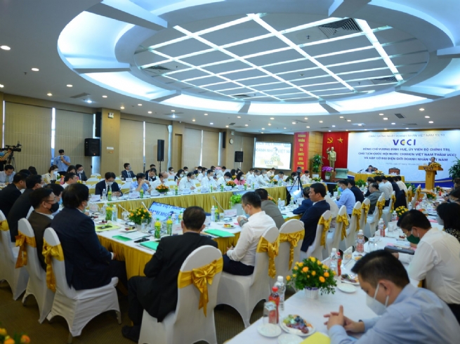 Toàn cảnh buổi làm việc giữa Chủ tịch Quốc hội Vương Đình Huệ và VCCI
