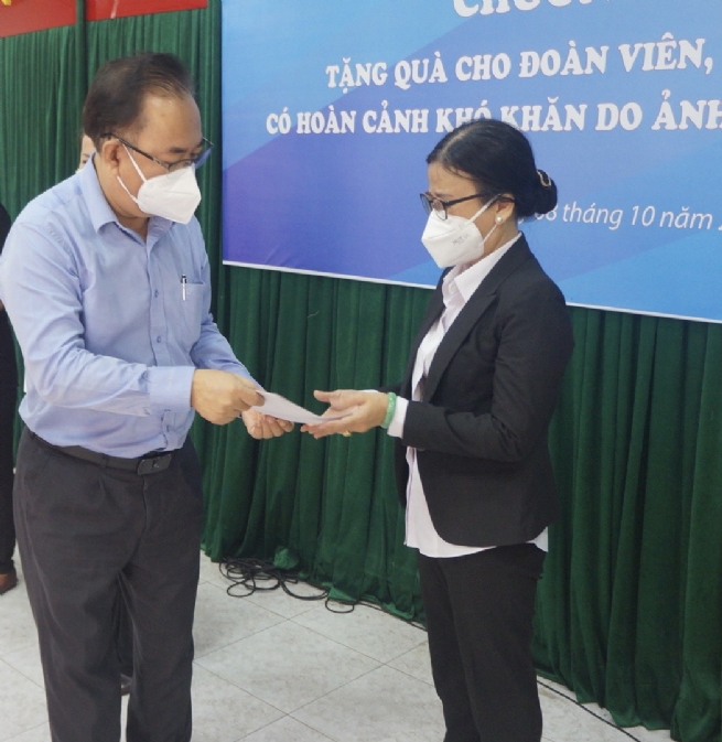 Ông Nguyễn Ngọc An, Tổng Giám đốc Công ty VISSAN trao tặng cho đại diện gia đình của người lao động không may bị mất do dịch bệnh Covid-19