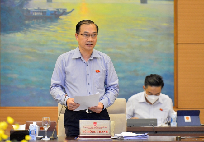 Chủ nhiệm Ủy ban Kinh tế của Quốc hội Vũ Hồng Thanh trình bày báo cáo thẩm tra về Kế hoạch cơ cấu lại nền kinh tế giai đoạn 2021-2025