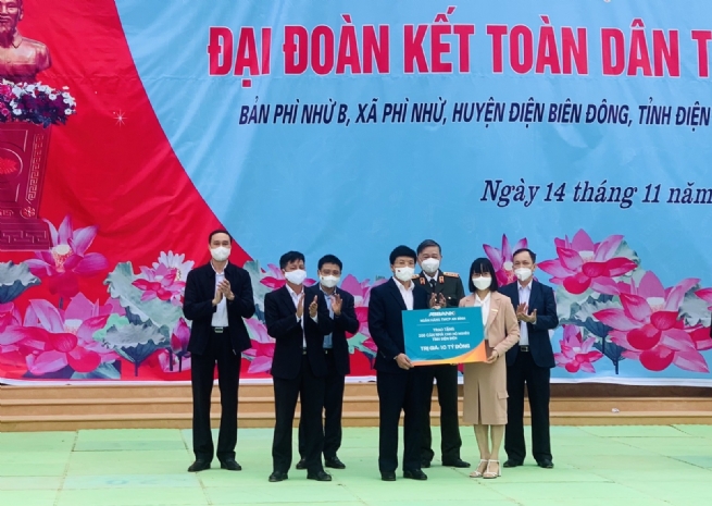 Nhân dịp “Ngày hội Đại đoàn kết toàn dân tộc” năm 2021, Bộ Công an phối hợp cùng NHNN kêu gọi một số ngân hàng và doanh nghiệp ủng hộ tổng cộng 55 tỷ đồng để tiếp tục xây dựng, sửa chữa 1.100 căn nhà cho các hộ nghèo gặp khó khăn trên địa bàn huyện Điện Biên Đông, tỉnh Điện Biên. Những hỗ trợ này đã được trao tới tận tay người dân tỉnh Điện Biên từ các nhà tài trợ, trong đó ABBANK đã trao tặng 200 căn nhà với tổng giá trị 10 tỷ đồng.