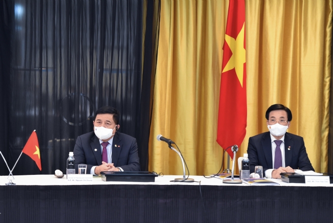 Lãnh đạo các bộ, ngành Việt Nam tham dự đối thoại. Ảnh: VGP/Nhật Bắc