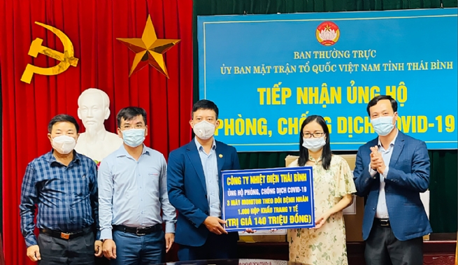 Ban Chỉ đạo Phòng chống dịch Covid-19 Công ty đã xây dựng và tổ chức thành công diễn tập các biện pháp phòng, chống dịch Covid-19 phù hợp với đặc thù sản xuất; chuẩn bị phương tiện thi công, vật tư thiết bị dự phòng, hệ thống thông tin liên lạc thông suốt để đảm bảo sản xuất điện an toàn. Hơn thế, Công ty đã chủ động đẩy mạnh việc tiêm vaccine ngừa Covid-19 cho người lao động: Đến hết tháng 9/2021 đã tiêm mũi 1 cho 326 người, đạt 97,6% (09 người chưa tiêm do mang thai), tiêm đủ 2 mũi cho 137 người, đạt 41% và phấn đấu tiêm đủ 2 mũi trong tháng 12/2021. Không chỉ giữ doanh nghiệp là “pháo đài an toàn” trước dịch bệnh, Công ty tiếp tục chung tay tham gia hoạt động phòng, chống dịch của tỉnh Thái Bình thông qua các hoạt động như ủng hộ Bệnh viện Đa khoa tỉnh 1.000 hộp khẩu trang y tế; ủng hộ ngành y tế tỉnh 03 máy theo dõi nhịp tim và 1.000 hộp khẩu trang y tế với tổng trị giá 140 triệu đồng.