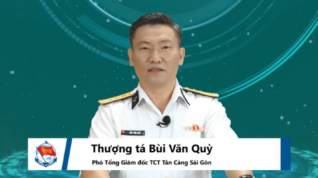 Thượng tá Bùi Văn Quỳ - Phó Tổng Giám đốc TCT Tân Cảng Sài Gòn phát biểu khai mạc sự kiện