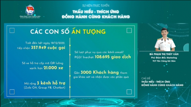 Sáng 29-12-2021, Tổng công ty Tân cảng Sài Gòn tổ chức “Ngày khách hàng hiện trường lần thứ 8” với hình thức trực tuyến lần đầu tiên - Đây là điểm nhấn trong chuỗi sự kiện tháng Tri ân khách hàng hiện trường của TCSG cùng thông điệp “Thấu hiểu – Thích ứng – Đồng hành cùng khách hàng”. Sự kiện đã thành công thu hút hơn 1.050 khách hàng tham dự và theo dõi trên đa kênh trực tuyến với sân khấu thực tế ảo.