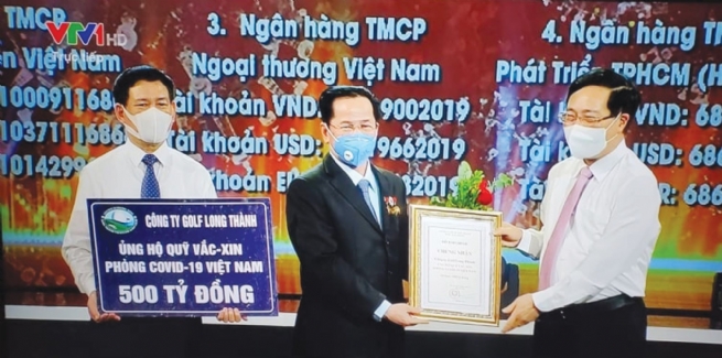 Đặc biệt, hưởng ứng lời kêu gọi của Chính phủ trong công tác phòng chống dịch Covid-19, doanh nhân Lê Văn Kiểm đã trao tặng cho Quỹ Vaccine phòng chống Covid-19 số tiền 500 tỷ đồng. Bên cạnh đó, vợ chồng ông cũng đã ủng hộ gần 100 tỷ đồng cho công tác phòng chống dịch Covid-19 thông qua Ủy ban Mặt trận Tổ quốc Việt Nam, Hiệp hội Doanh nhân Cựu chiến binh Việt Nam cho Bộ đội Biên phòng và các đơn vị trong tuyến đầu chống dịch. Những nghĩa cử cao đẹp này không chỉ thể hiện tinh thần trách nhiệm đối với cộng đồng, xã hội của vợ chồng doanh nhân Lê Văn Kiểm - Trần Cẩm Nhung mà còn góp phần chung tay cùng Chính phủ, Thủ tướng Chính phủ trong cuộc chiến chống dịch bệnh.