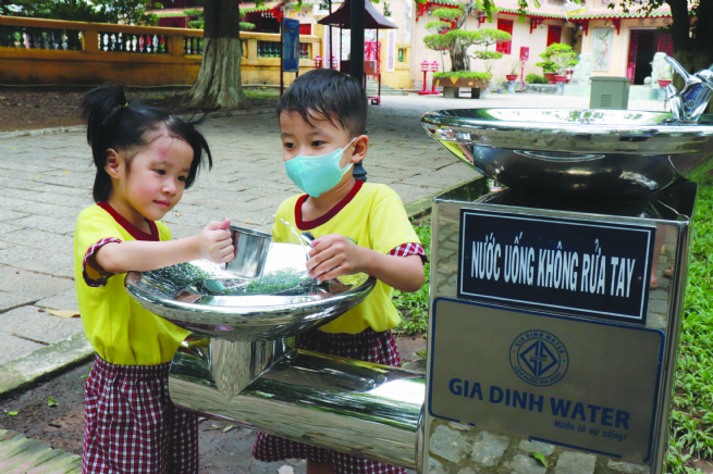 Niềm vui uống nước tại vòi của trẻ em