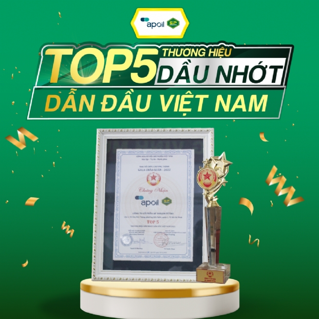 Vừa qua, công ty dầu nhớt AP Saigon Petro vinh dự được đón nhận giải thưởng “Top 5 thương hiệu dầu nhớt dẫn đầu Việt Nam”. Trải qua một năm thăng trầm với nhiều biến chuyển, danh hiệu này vừa là niềm động lực lớn lao của AP Saigon Petro; vừa là minh chứng cho chất lượng sản phẩm dầu nhớt cao cấp.