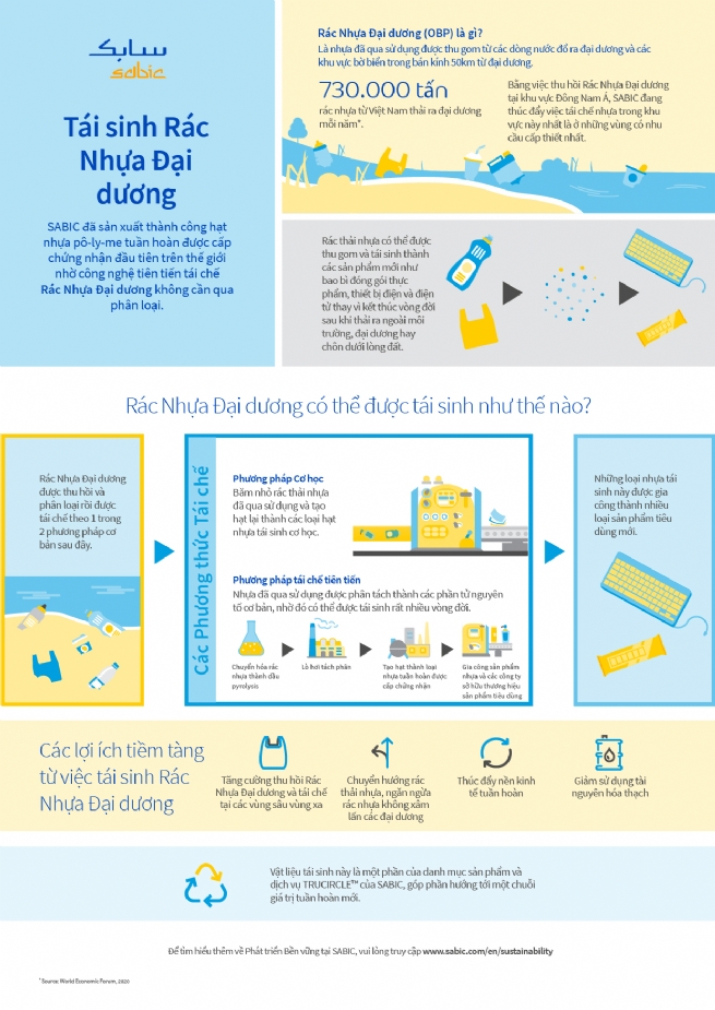 Các loại hạt nhựa pô-ly-me tuần hoàn tái sinh từ rác nhựa đại dương đã được cấp chứng nhận này thuộc danh mục các giải pháp tái sinh TRUCIRCLE™ của SABIC được khách hàng của SABIC sử dụng để sản xuất các sản phẩm mới và sẽ công bố trong vài tháng tới.