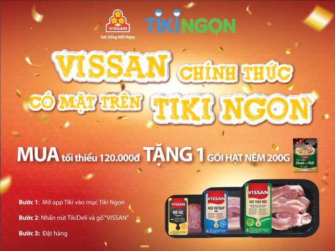 Nhân dịp có mặt tại Tiki Ngon, VISSAN có cũng chương trình siêu ưu đãi “Mua thịt tươi ngon – nhận ngay quà tặng”. Theo đó, khách hàng khi mua đơn hàng Thịt tươi sống VISSAN (Heo, Bò) tại gian hàng VISSAN trên Tiki Ngon với giá trị từ 120.000 đồng trở lên sẽ được tặng 1 gói Hạt Nêm Chuẩn vị thịt VISSAN 200g. (Số lượng quà tặng có giới hạn, chương trình có thể sẽ kết thúc sớm hơn thời gian dự kiến khi quà tặng được tặng hết)
