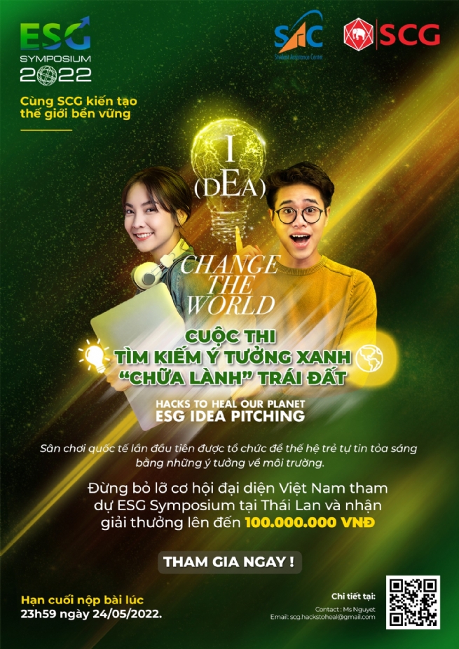 Ngày 12/05, SCG, tập đoàn công nghiệp hàng đầu khu vực Đông Nam Á, chính thức khởi động cuộc thi “Tìm kiếm ý tưởng xanh - chữa lành Trái Đất” (Hacks to heal our planet) ở ba nước Thái Lan, Indonesia và Việt Nam. Cuộc thi kêu gọi thế hệ trẻ chia sẻ những ý tưởng sáng tạo để cùng cải thiện các vấn đề môi trường, đóng góp cho xã hội, và hướng đến một thế giới tốt đẹp hơn cho thế hệ tương lai.