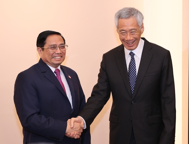 Thủ tướng Phạm Minh Chính và Thủ tướng Singapore Lý Hiển Long - Ảnh: VGP/Nhật Bắc