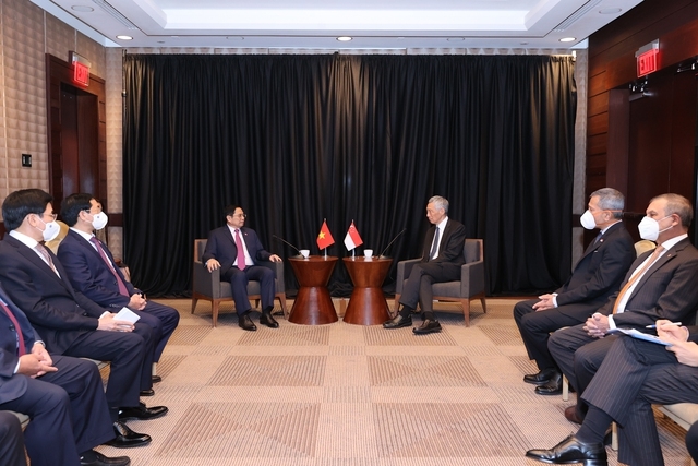Sáng ngày 12/5, nhân dịp tham dự Hội nghị Cấp cao đặc biệt ASEAN-Hoa Kỳ, thăm và làm việc tại Hoa Kỳ và Liên Hợp Quốc, Thủ tướng Chính phủ Phạm Minh Chính đã có cuộc gặp với Thủ tướng Singapore Lý Hiển Long.