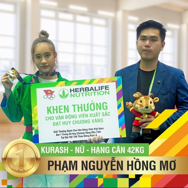Đại diện Herbalife Việt Nam trao thưởng nóng cho Vận Động Viên đạt huy chương vàng đầu tiên: Kurash gồm Lê Công Hoàng Hải hạng cân 60kg; Lê Đức Đông hạng cân 66kg; Nguyễn Thị Thanh Trâm hạng cân 70kg, Trần Thương hạng cân 90kg, Bùi Minh Quân hạng cân 81kg, Phạm Nguyễn Hồng Mơ hạng cân 42kg, Tô Thị Trang hạng cân 48kg, Pencak Silat gồm Nguyễn Thị Thu Hà - Nguyễn Thị Huyền - Vương Thị Bình nội dung quyền Tập thể nữ, Cử tạ gồm Phạm Văn Mách hạng cân 55 kg, Đặng Thanh Tùng hạng cân 65kg, Wushu gồm Dương Thúy Vi nội dung kiếm thuật nữ, Phạm Quốc Khánh nội dung nam đao.